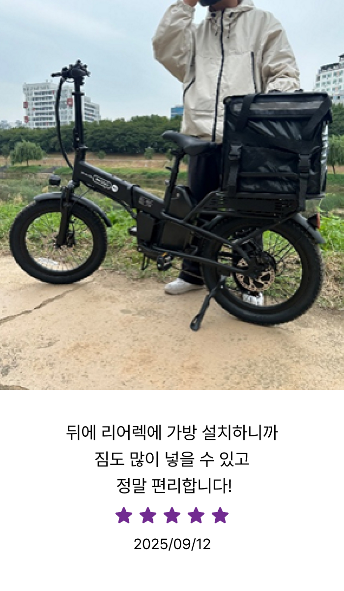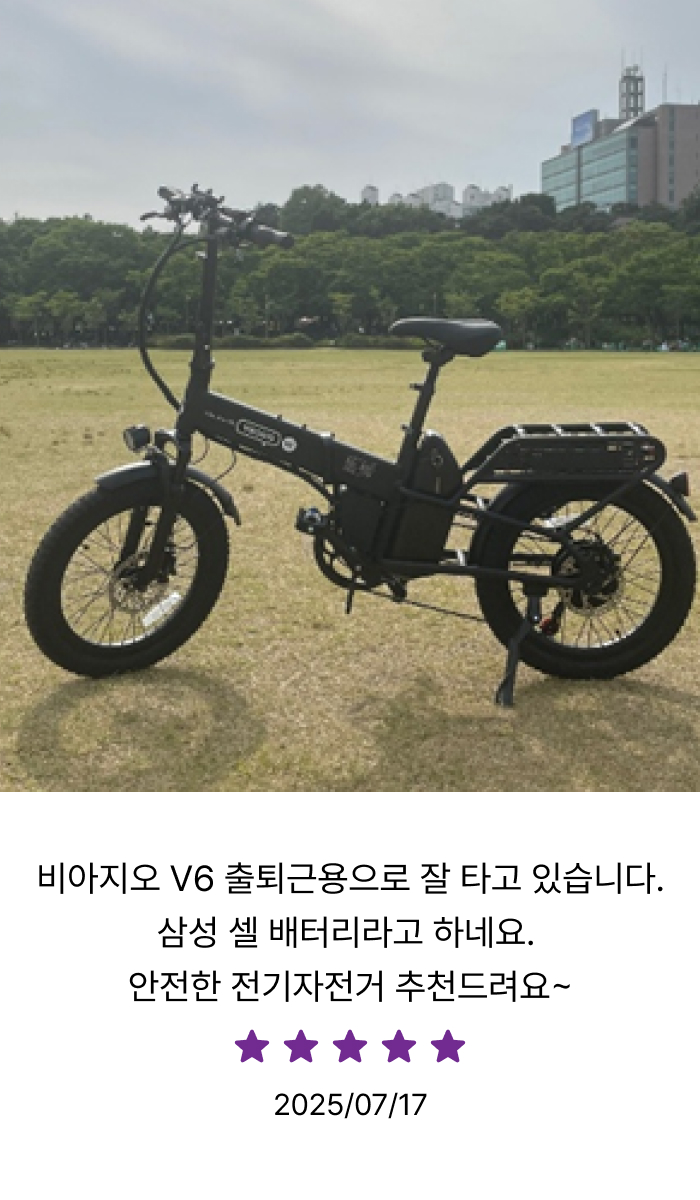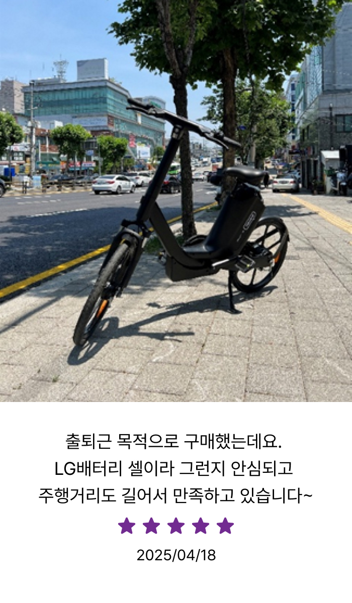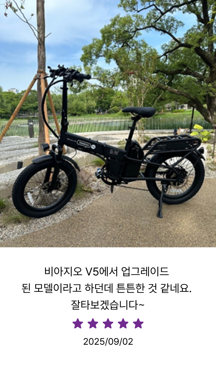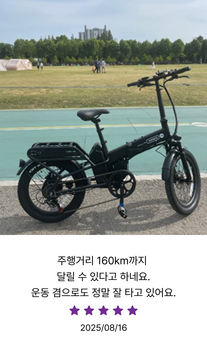 1회 충전만으로 최대160km 주행 가능합니다.파워풀한 성능의 전기자전거로 더 효율적인라이딩을 경험하세요.