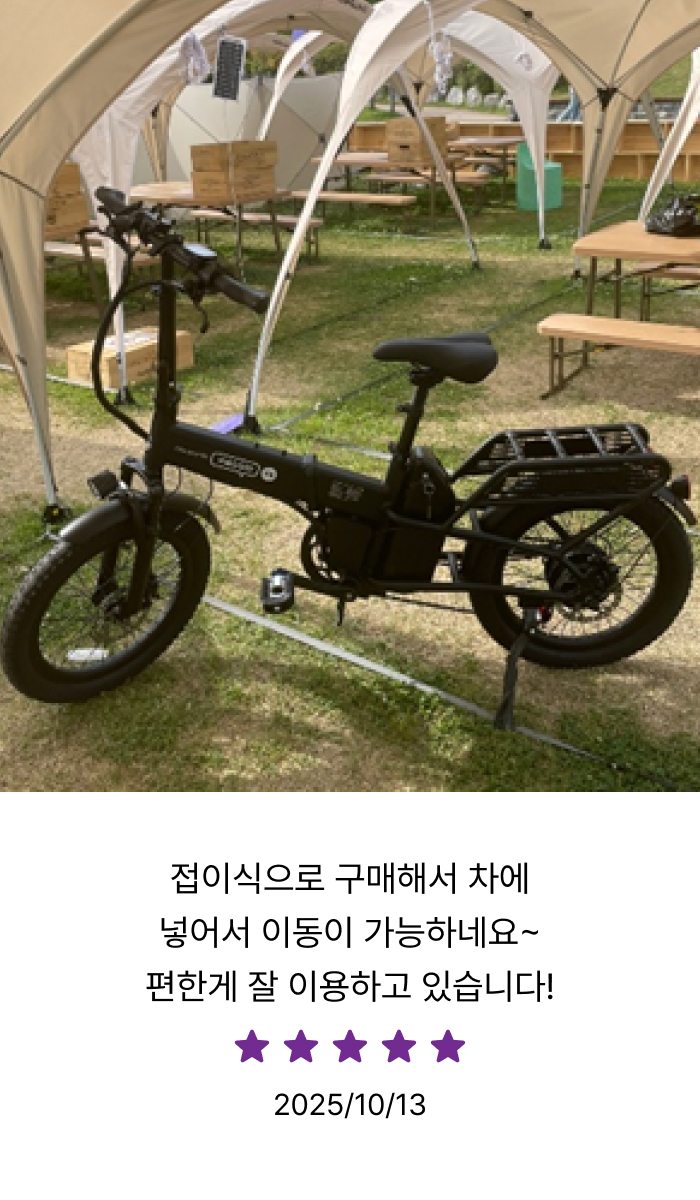1회 충전만으로 최대160km 주행 가능합니다.파워풀한 성능의 전기자전거로 더 효율적인 라이딩을 경험하세요.